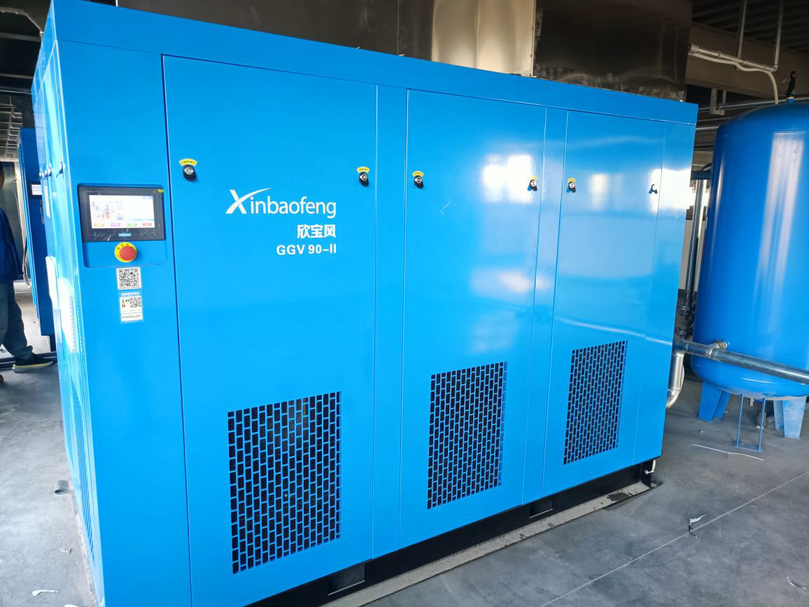 欣宝风GGV系列永磁变频单级压缩机采用内嵌式一体轴直联结构,传动效率达100%,较皮带传动机型节能15%。其搭载的IP65全封闭永磁电机在可实现调速精度±0.1%,较普通电机效率提升8%。江苏某纺织企业实测数据显示,该机型年耗电量从120万度降至88万度,单台年省电费21.6万元。